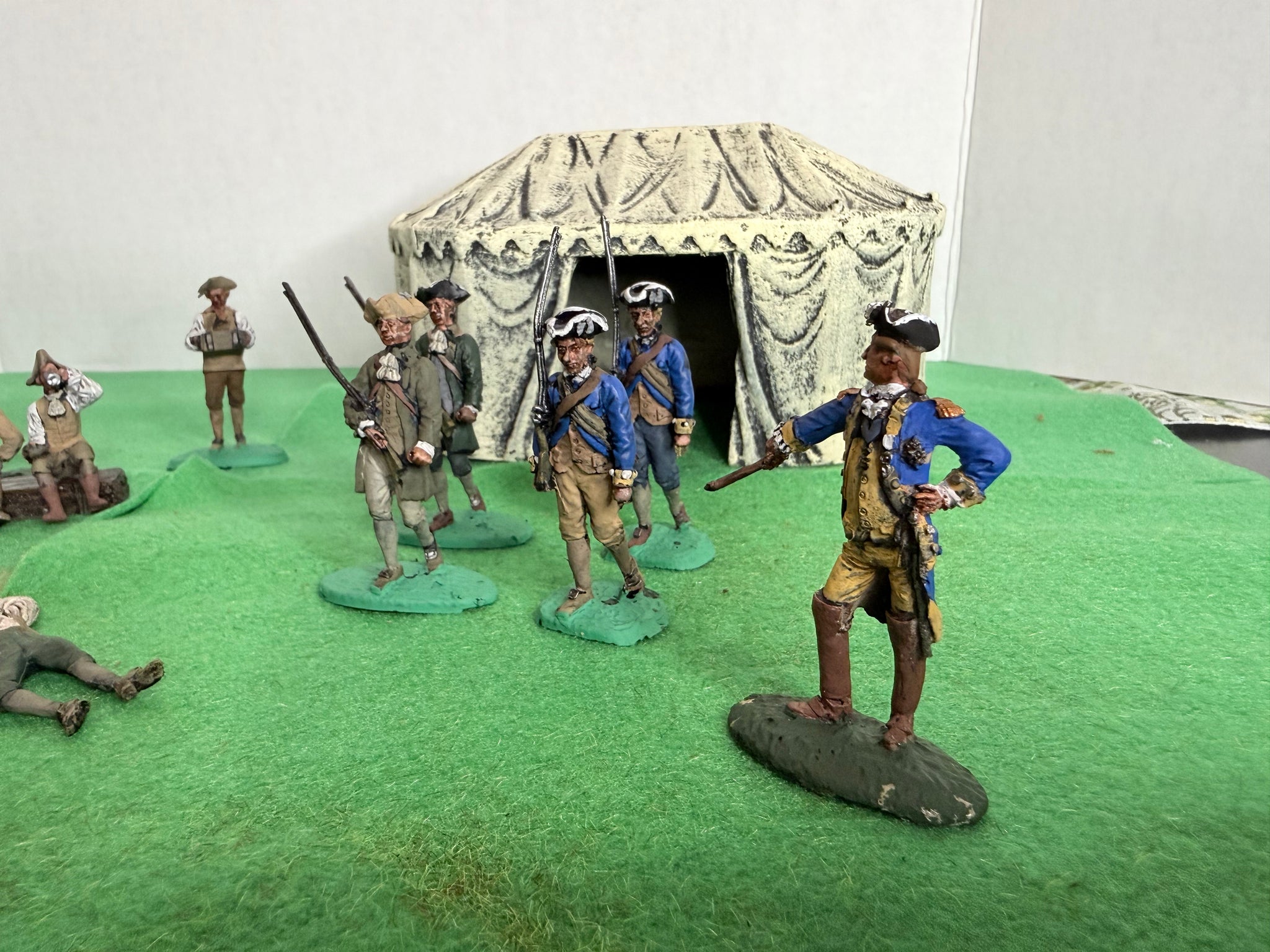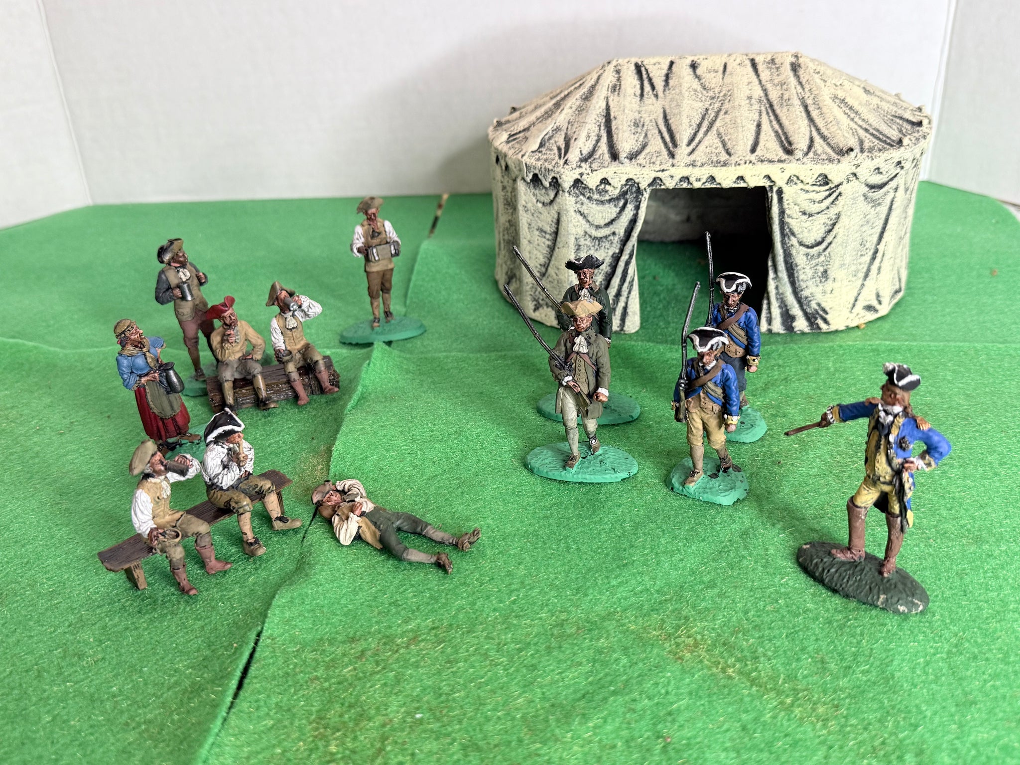 Even during the horrors of war, there is some down time. The Rev War Camp captures a number of the American patriots training and relaxing between drills.