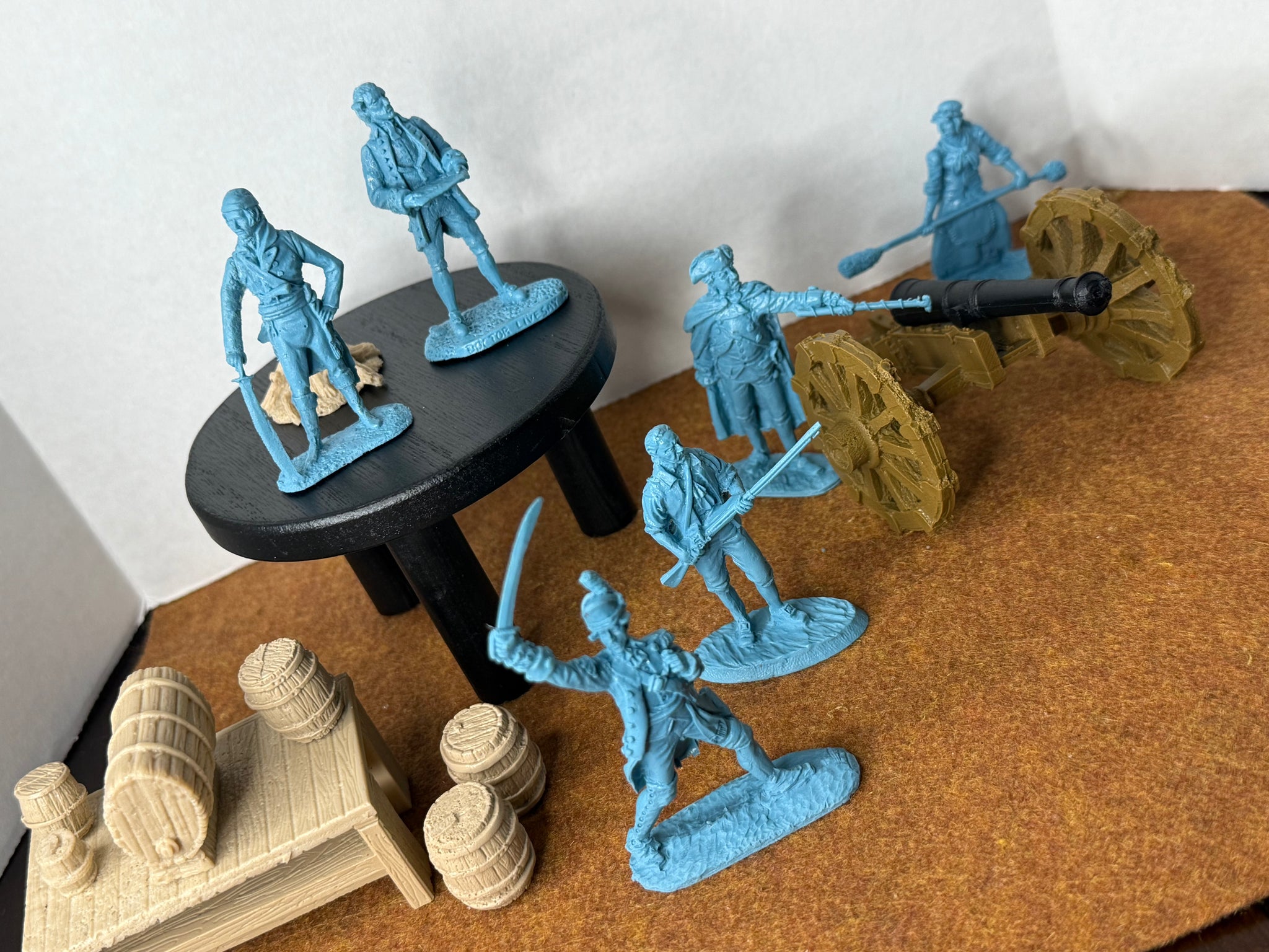 From the Battle of New Orleans Playset, the character figure Jean Lafitte is now available in blue resin. Lafitte provides collectors with a leader of the Pirates and a key contributor to the success of the Americans during the Battle of New Orleans.